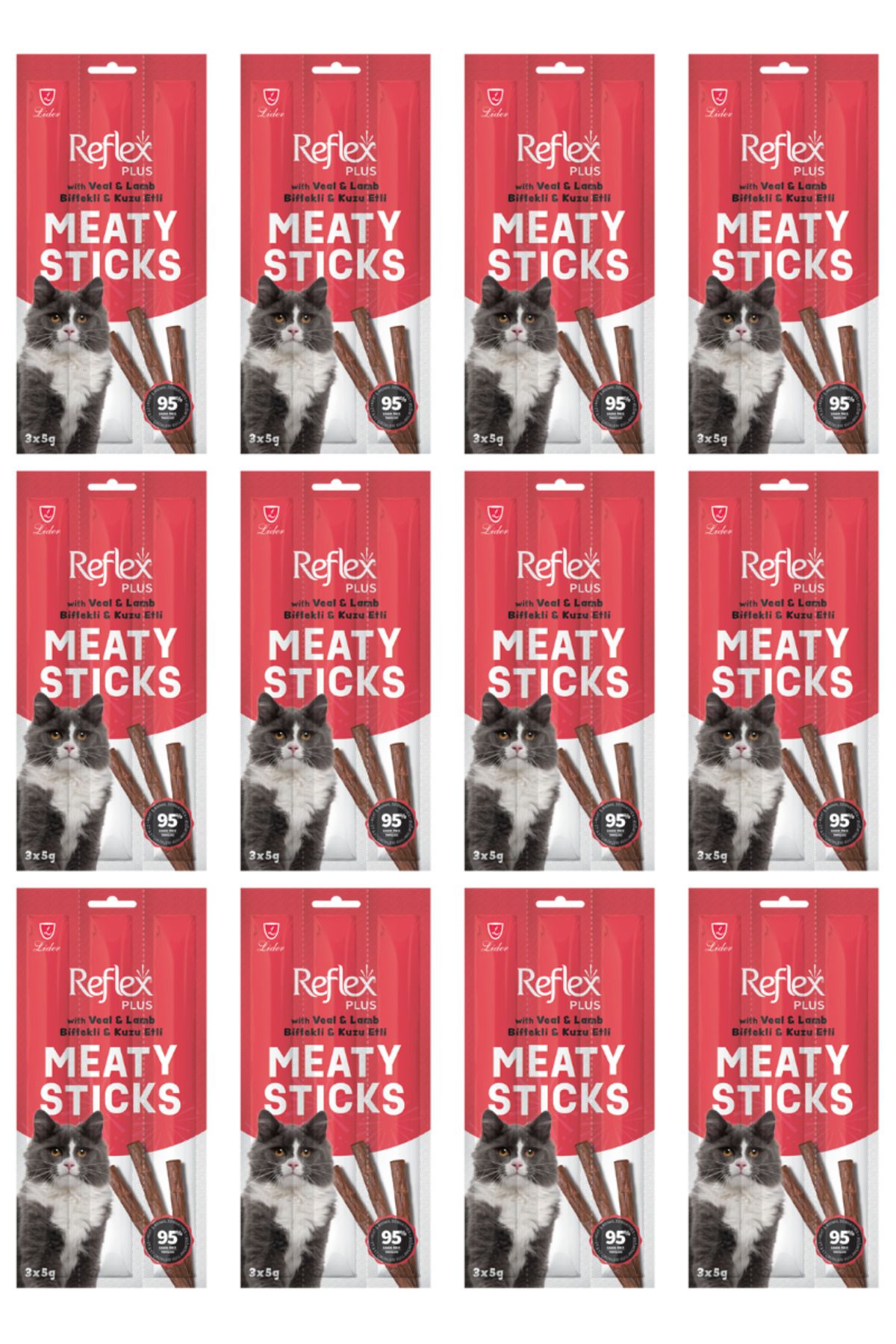 Reflex Biftek ve Kuzu Kedi Ödül Çubuğu Stick 3x5gr – 12 Adet