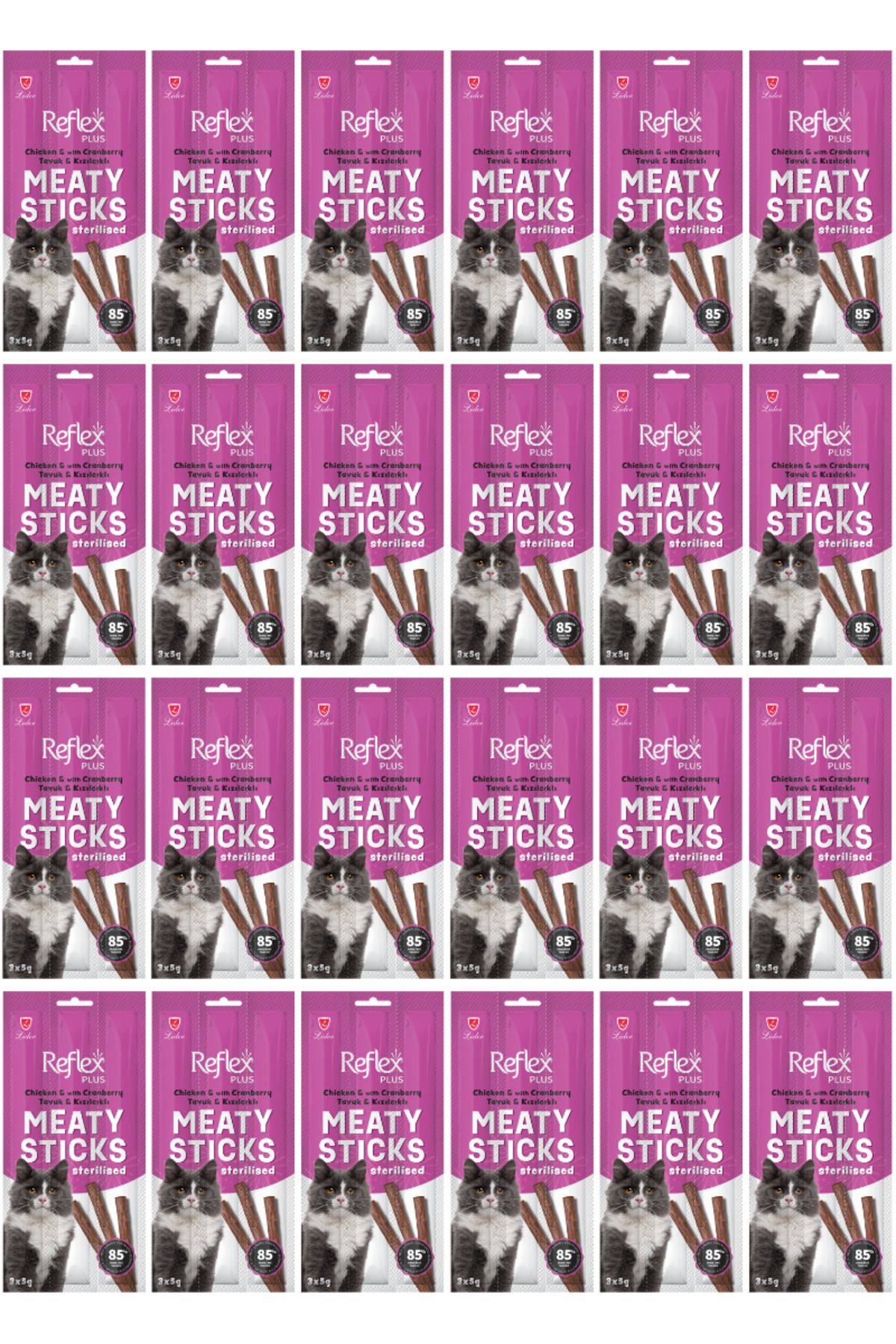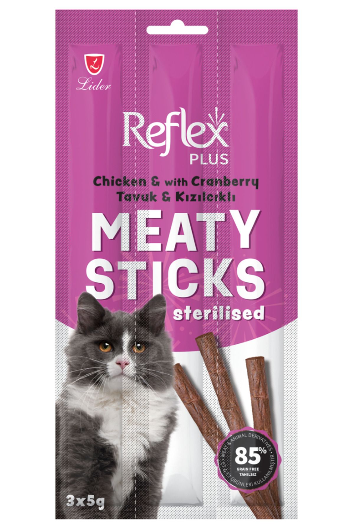 Reflex Tavuklu ve Kızılcıklı Kısırlaştırılmış Kedi Ödül Çubuğu Stick 3*5gr – 24 Adet
